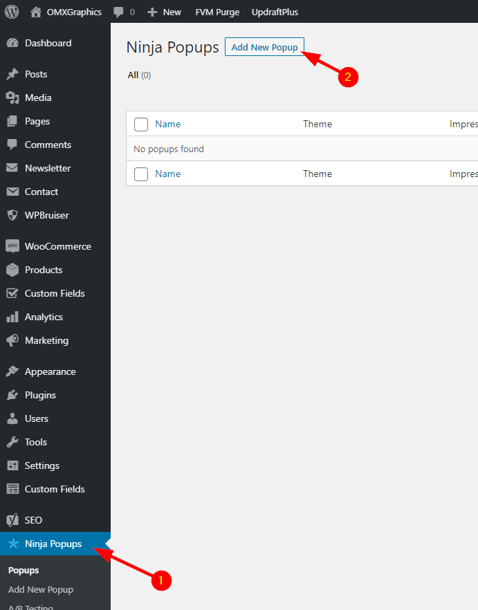 1. Start by clicking on Ninja Popups item in Admin menu,