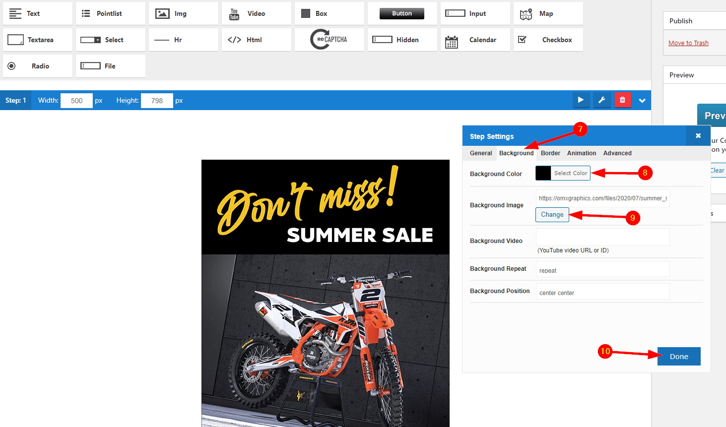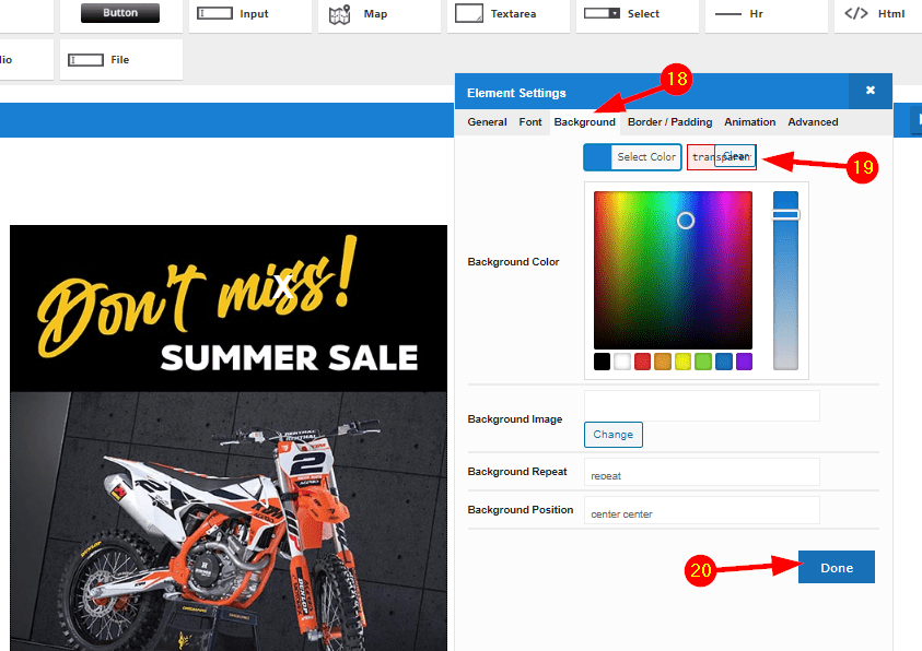 8. Click Select Color button and choose a color that will be the background of the entire popup