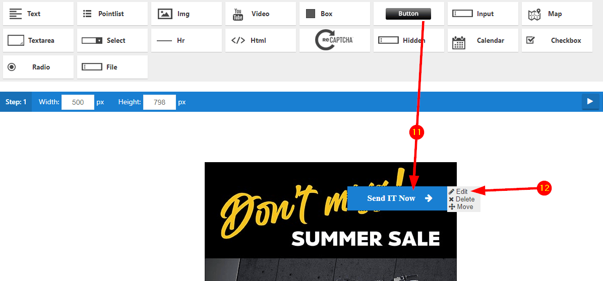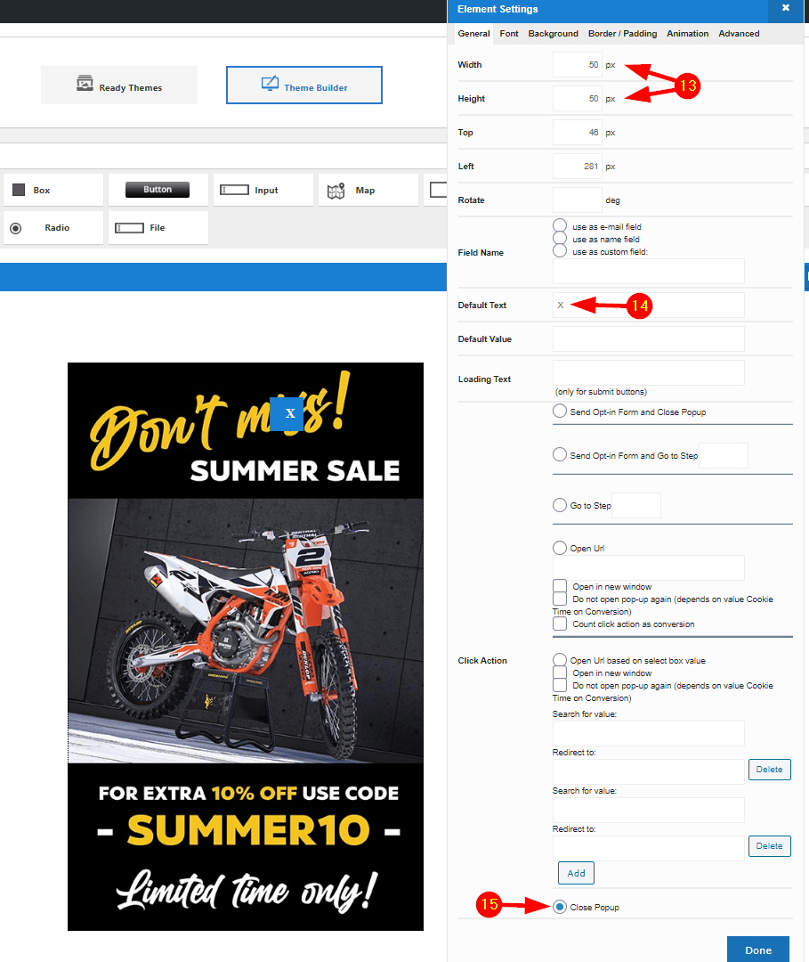 11. Drag a Button element from top bar into popup area (we’ll transform this in a Close button with an X)