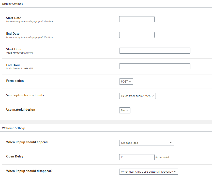 (scrolling down the page you could edit date interval for the popup, the triggers that make is appear and disappear and a lot other settings)