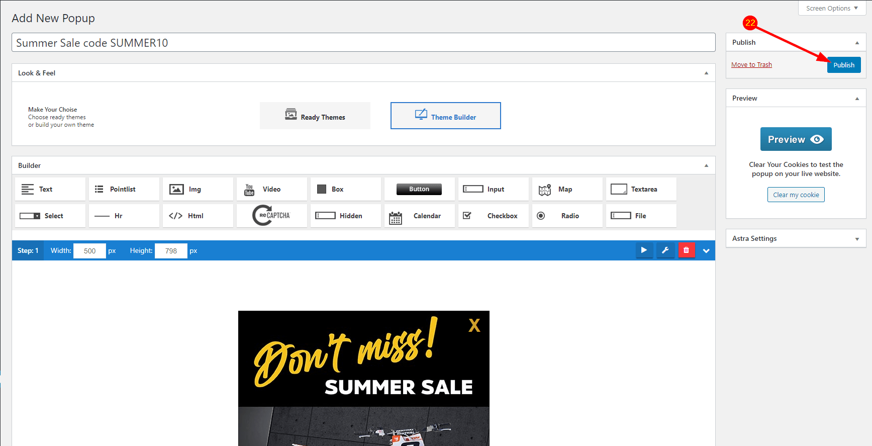 A simple popup means a popup that display some information in a nice way and it has a Close button. It doesn’t have email collection feature (that would be a Subscription popup, we’ll get to that later on)