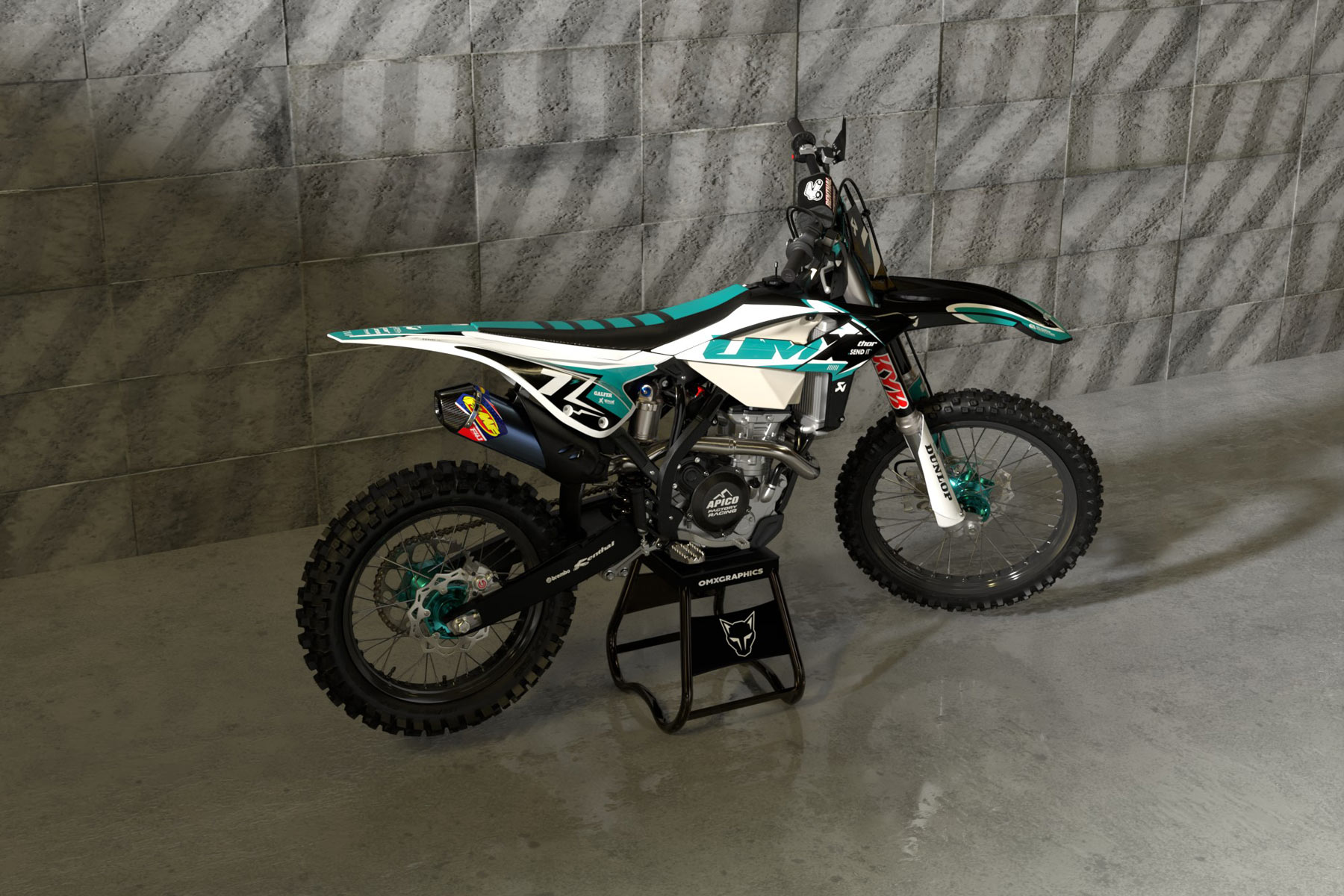 All of our custom graphic kits can be made to fit any make and model! If you don’t find your bike / model on our website, feel free to drop a line and we will figure it out for you! Full graphics kit includes: Radiator shroud set Front and side number plate decals Air box decals Front fender decal Rear fender decal Fork guard decals Swing arm decals Logos: We have most of Motocross industry related logos that can be used on your decals; However there are few logos like energy drink that we cannot use; If you would like to use your own sponsor / company logos you can upload them or send to sales@omxgraphics.com including your order number and name; All logos need to be in vector format (ai. eps. pdf.). If you do not have one of these we will our best to work with your file or make a custom one for you; Our materials All our decals are made using Substance materials only - industry leading print media for motocross and other power-sport applications. Developed alongside worlds best racers and testet in harsh conditions.  FLO Technology eliminates bubbles and massively reduces installation time.  6mil Ultra-Aggressive Print Media with FLO Technology + 15mil Premium Clear Overlaminate All materials are specifically engineered for motocross, karts, ATVs, snowmobiles, side-x-sides, helmets, and other extreme applications requiring exceptional protection, durability, and flexibility.  Turnaround - Most orders are shipped out within 5 - 10 business days after your order date; - Seat covers are shipped separately; - Please allow us 1 - 5 business days for production after your design approval; Here you can find a video on how to easy install your new graphics kit.