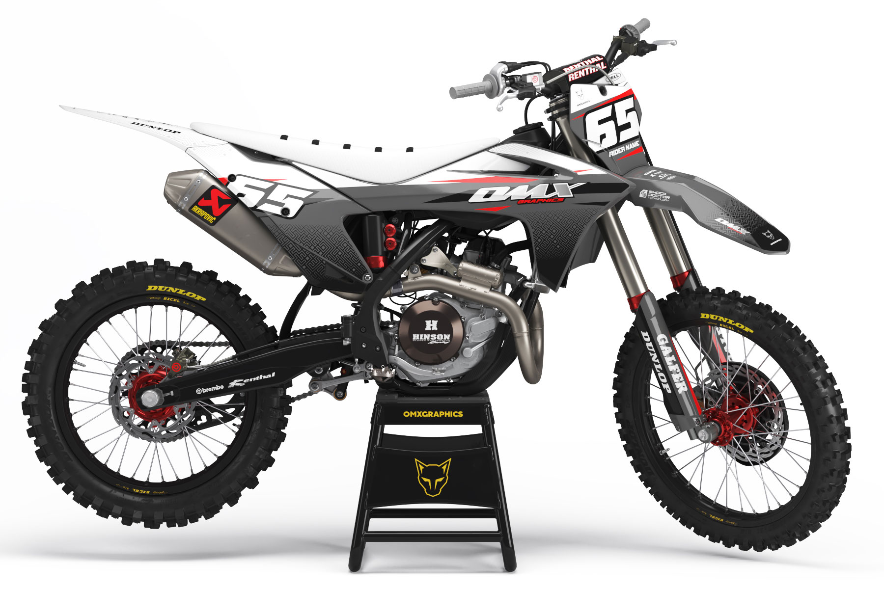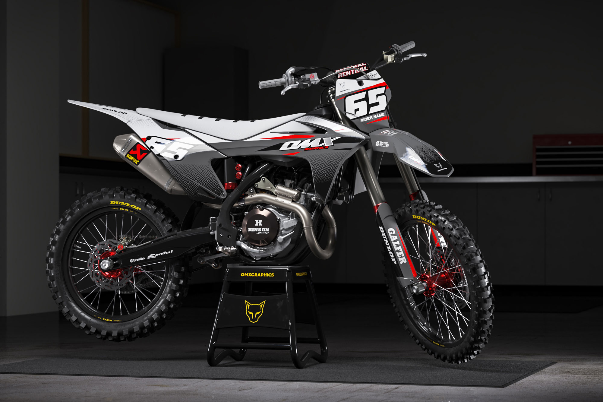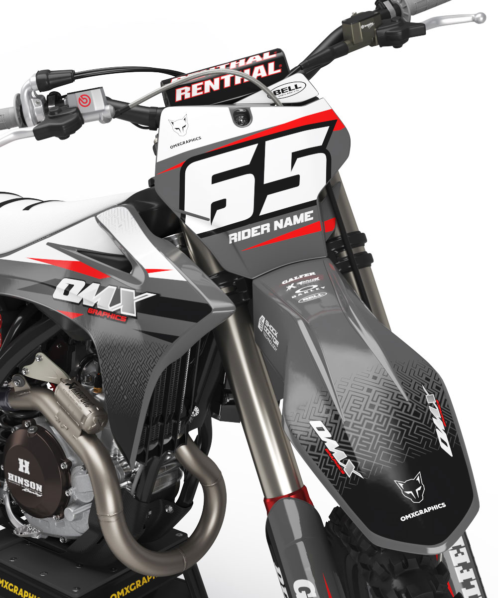 All of our custom graphic kits can be made to fit any make and model! If you don’t find your bike / model on our website, feel free to drop a line and we will figure it out for you! Full graphics kit includes: Radiator shroud set Front and side number plate decals Air box decals Front fender decal Rear fender decal Fork guard decals Swing arm decals Logos: We have most of Motocross industry related logos that can be used on your decals; However there are few logos like energy drink that we cannot use; If you would like to use your own sponsor / company logos you can upload them or send to sales@omxgraphics.com including your order number and name; All logos need to be in vector format (ai. eps. pdf.). If you do not have one of these we will our best to work with your file or make a custom one for you; Our materials All our decals are made using Substance materials only - industry leading print media for motocross and other power-sport applications. Developed alongside worlds best racers and testet in harsh conditions.  FLO Technology eliminates bubbles and massively reduces installation time.  6mil Ultra-Aggressive Print Media with FLO Technology + 15mil Premium Clear Overlaminate All materials are specifically engineered for motocross, karts, ATVs, snowmobiles, side-x-sides, helmets, and other extreme applications requiring exceptional protection, durability, and flexibility.  Turnaround - Most orders are shipped out within 5 - 10 business days after your order date; - Seat covers are shipped separately; - Please allow us 1 - 5 business days for production after your design approval; Here you can find a video on how to easy install your new graphics kit.