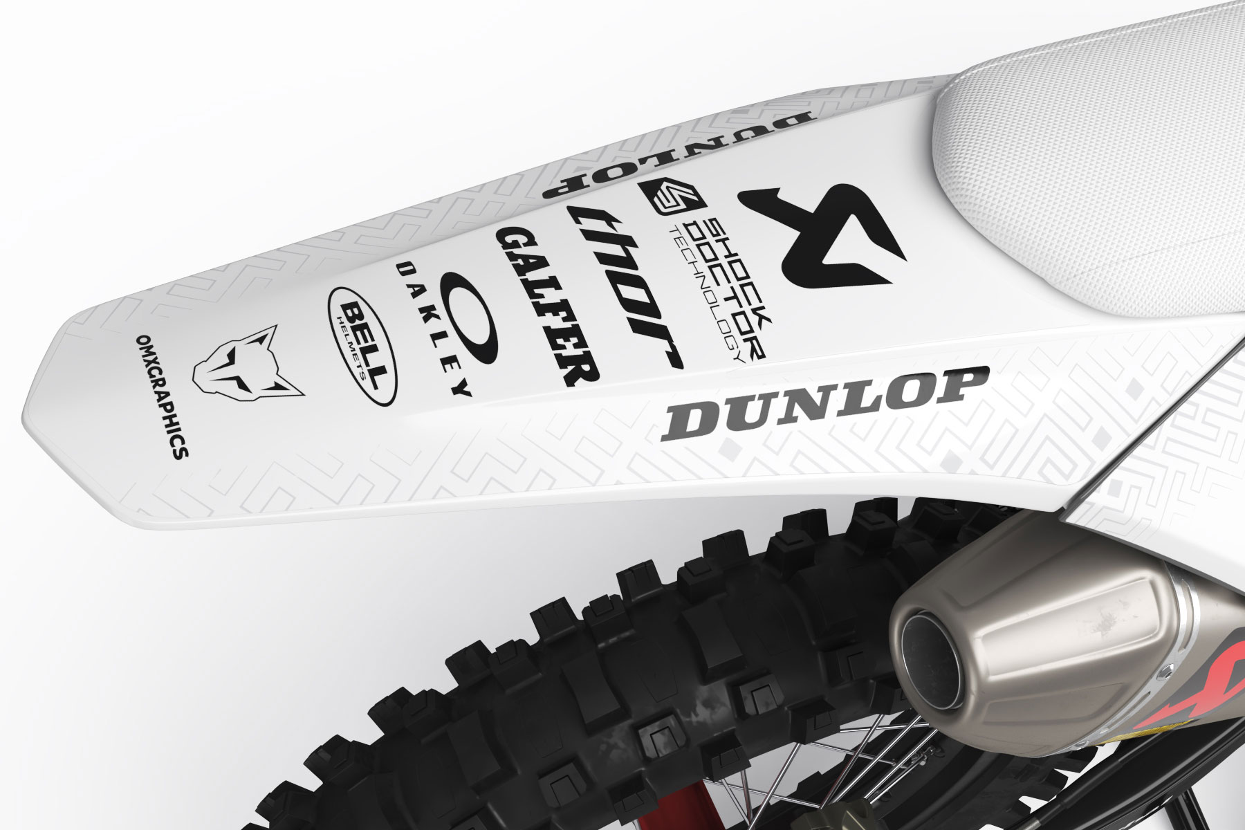 Ce design personnalisé est disponible pour la plupart des modèles GasGas à partir de 1998. Choisis ton modèle dans la liste ou saisis-le manuellement. Tu peux changer les couleurs, ajouter des logos, ton nom et ton numéro – sans aucun coût supplémentaire! Indique simplement tes détails de personnalisation ci-dessous et nous t’enverrons un aperçu du design par e-mail pour validation.
