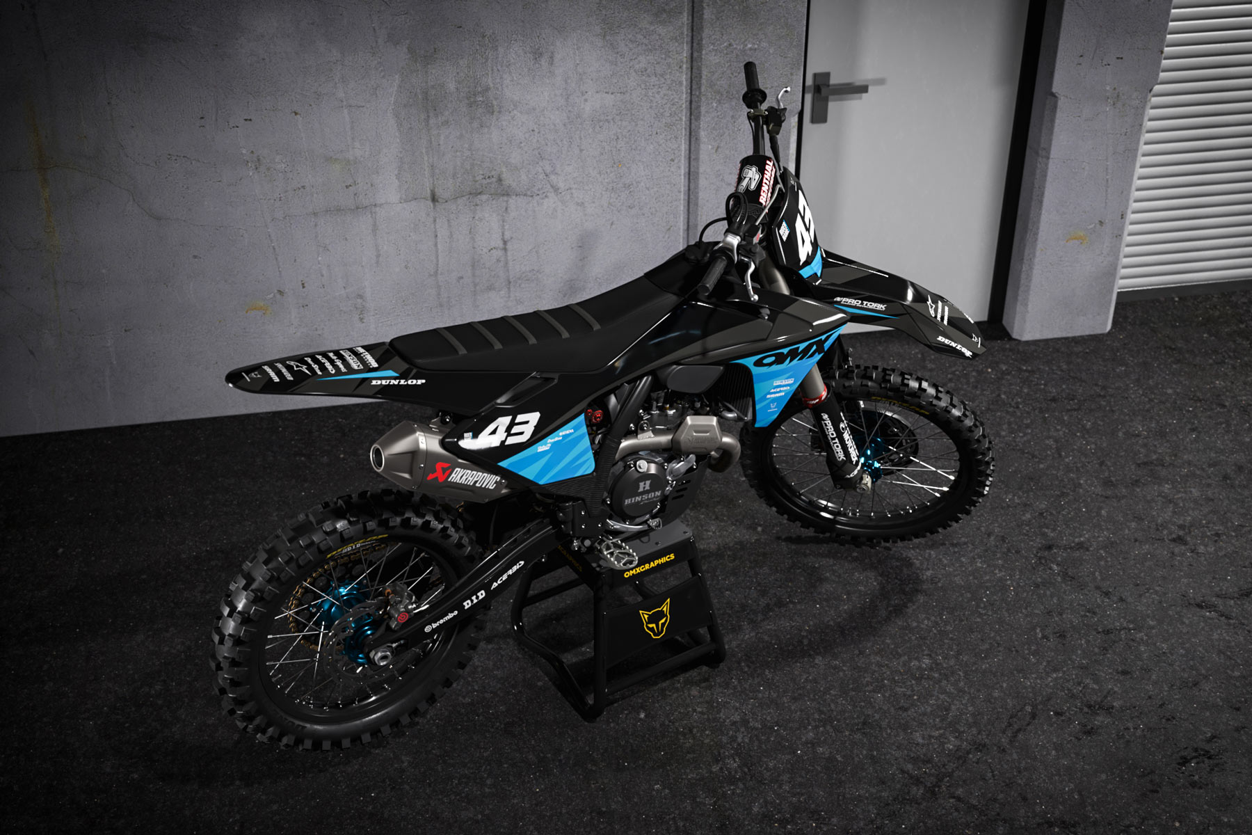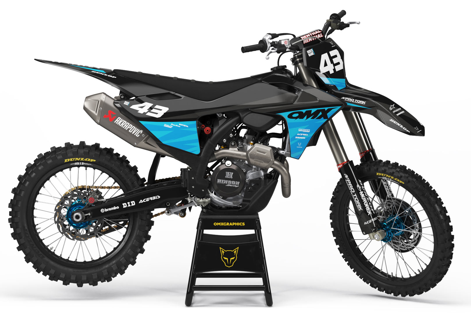 All of our custom graphic kits can be made to fit any make and model! If you don’t find your bike / model on our website, feel free to drop a line and we will figure it out for you! Full graphics kit includes: Radiator shroud set Front and side number plate decals Air box decals Front fender decal Rear fender decal Fork guard decals Swing arm decals Logos: We have most of Motocross industry related logos that can be used on your decals; However there are few logos like energy drink that we cannot use; If you would like to use your own sponsor / company logos you can upload them or send to sales@omxgraphics.com including your order number and name; All logos need to be in vector format (ai. eps. pdf.). If you do not have one of these we will our best to work with your file or make a custom one for you; Our materials All our decals are made using Substance materials only - industry leading print media for motocross and other power-sport applications. Developed alongside worlds best racers and testet in harsh conditions.  FLO Technology eliminates bubbles and massively reduces installation time.  6mil Ultra-Aggressive Print Media with FLO Technology + 15mil Premium Clear Overlaminate All materials are specifically engineered for motocross, karts, ATVs, snowmobiles, side-x-sides, helmets, and other extreme applications requiring exceptional protection, durability, and flexibility.  Turnaround - Most orders are shipped out within 5 - 10 business days after your order date; - Seat covers are shipped separately; - Please allow us 1 - 5 business days for production after your design approval; Here you can find a video on how to easy install your new graphics kit.
