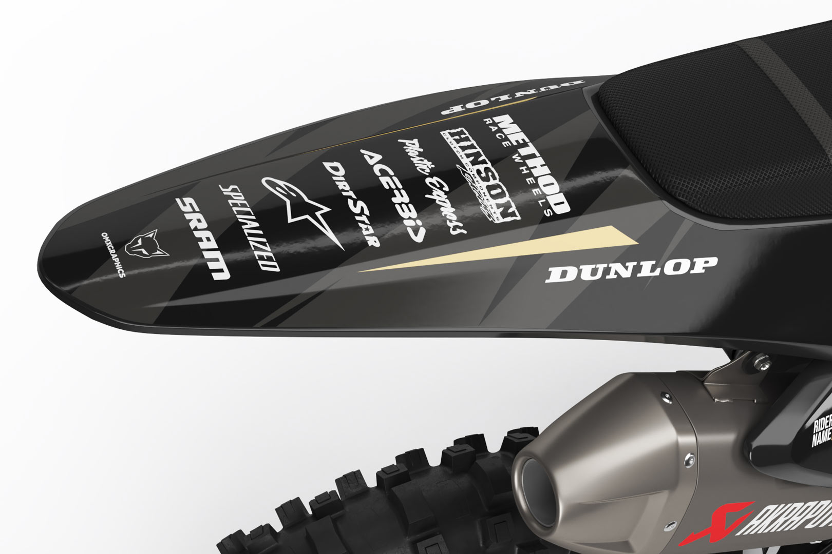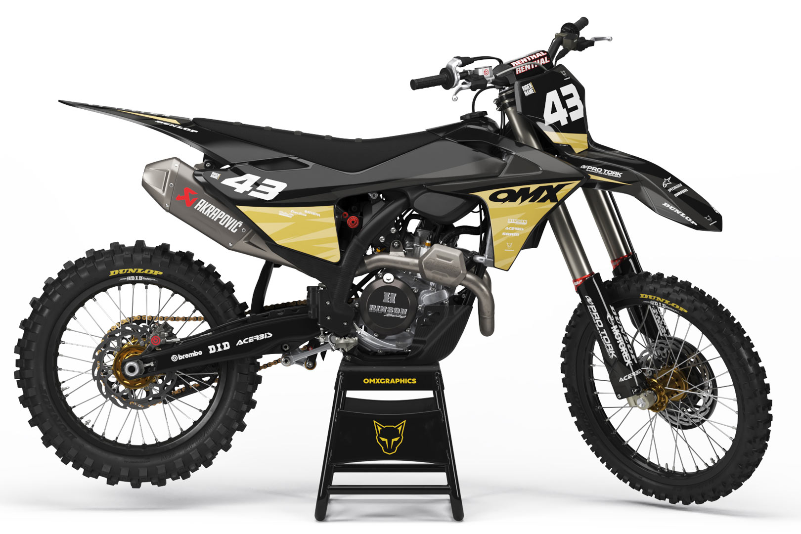 All of our custom graphic kits can be made to fit any make and model! If you don’t find your bike / model on our website, feel free to drop a line and we will figure it out for you! Full graphics kit includes: Radiator shroud set Front and side number plate decals Air box decals Front fender decal Rear fender decal Fork guard decals Swing arm decals Logos: We have most of Motocross industry related logos that can be used on your decals; However there are few logos like energy drink that we cannot use; If you would like to use your own sponsor / company logos you can upload them or send to sales@omxgraphics.com including your order number and name; All logos need to be in vector format (ai. eps. pdf.). If you do not have one of these we will our best to work with your file or make a custom one for you; Our materials All our decals are made using Substance materials only - industry leading print media for motocross and other power-sport applications. Developed alongside worlds best racers and testet in harsh conditions.  FLO Technology eliminates bubbles and massively reduces installation time.  6mil Ultra-Aggressive Print Media with FLO Technology + 15mil Premium Clear Overlaminate All materials are specifically engineered for motocross, karts, ATVs, snowmobiles, side-x-sides, helmets, and other extreme applications requiring exceptional protection, durability, and flexibility.  Turnaround - Most orders are shipped out within 5 - 10 business days after your order date; - Seat covers are shipped separately; - Please allow us 1 - 5 business days for production after your design approval; Here you can find a video on how to easy install your new graphics kit.