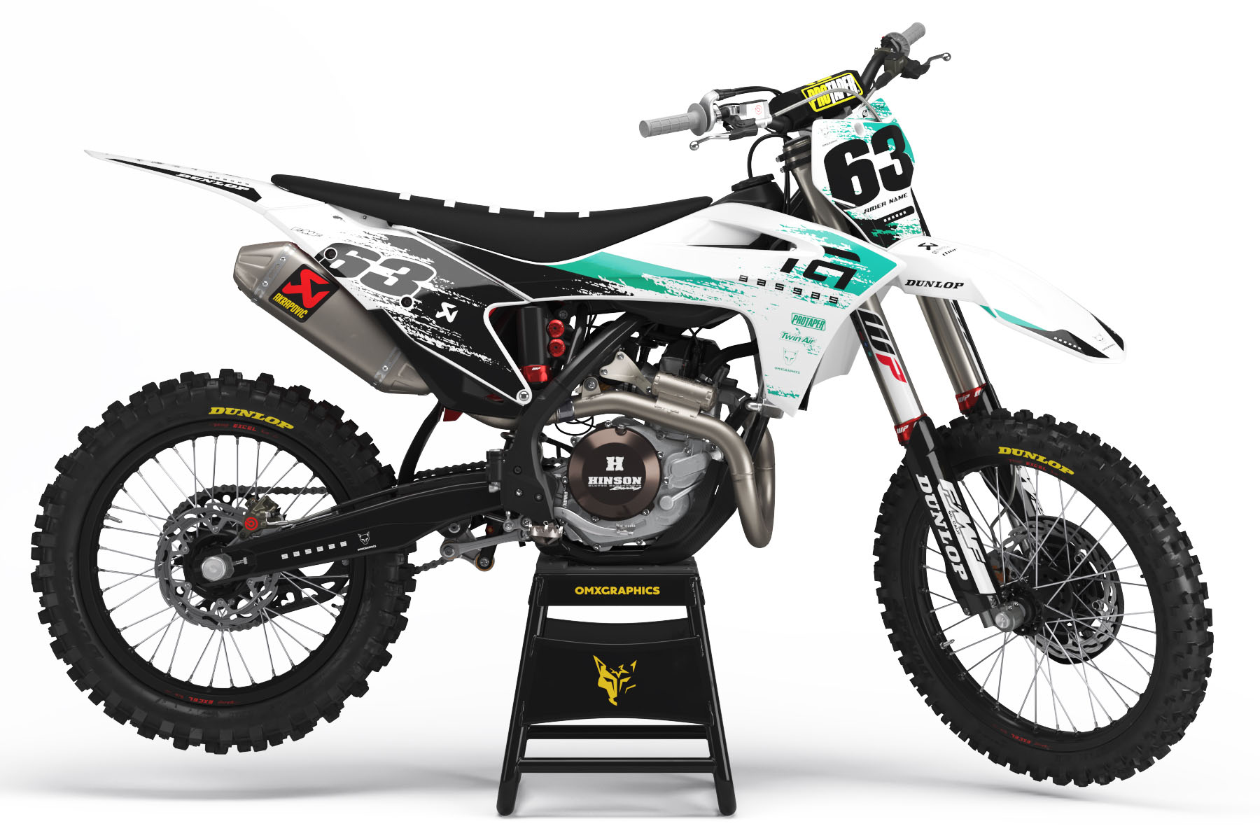 All of our custom graphic kits can be made to fit any make and model! If you don’t find your bike / model on our website, feel free to drop a line and we will figure it out for you! Full graphics kit includes: Radiator shroud set Front and side number plate decals Air box decals Front fender decal Rear fender decal Fork guard decals Swing arm decals Logos: We have most of Motocross industry related logos that can be used on your decals; However there are few logos like energy drink that we cannot use; If you would like to use your own sponsor / company logos you can upload them or send to sales@omxgraphics.com including your order number and name; All logos need to be in vector format (ai. eps. pdf.). If you do not have one of these we will our best to work with your file or make a custom one for you; Our materials All our decals are made using Substance materials only - industry leading print media for motocross and other power-sport applications. Developed alongside worlds best racers and testet in harsh conditions.  FLO Technology eliminates bubbles and massively reduces installation time.  6mil Ultra-Aggressive Print Media with FLO Technology + 15mil Premium Clear Overlaminate All materials are specifically engineered for motocross, karts, ATVs, snowmobiles, side-x-sides, helmets, and other extreme applications requiring exceptional protection, durability, and flexibility.  Turnaround - Most orders are shipped out within 5 - 10 business days after your order date; - Seat covers are shipped separately; - Please allow us 1 - 5 business days for production after your design approval; Here you can find a video on how to easy install your new graphics kit.