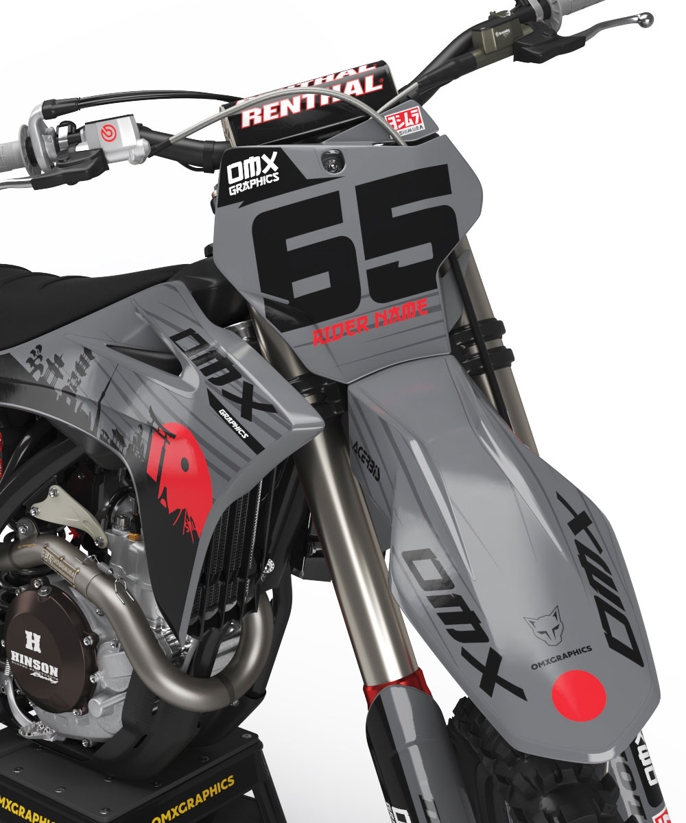 All of our custom graphic kits can be made to fit any make and model! If you don’t find your bike / model on our website, feel free to drop a line and we will figure it out for you! Full graphics kit includes: Radiator shroud set Front and side number plate decals Air box decals Front fender decal Rear fender decal Fork guard decals Swing arm decals Logos: We have most of Motocross industry related logos that can be used on your decals; However there are few logos like energy drink that we cannot use; If you would like to use your own sponsor / company logos you can upload them or send to sales@omxgraphics.com including your order number and name; All logos need to be in vector format (ai. eps. pdf.). If you do not have one of these we will our best to work with your file or make a custom one for you; Our materials All our decals are made using Substance materials only - industry leading print media for motocross and other power-sport applications. Developed alongside worlds best racers and testet in harsh conditions.  FLO Technology eliminates bubbles and massively reduces installation time.  6mil Ultra-Aggressive Print Media with FLO Technology + 15mil Premium Clear Overlaminate All materials are specifically engineered for motocross, karts, ATVs, snowmobiles, side-x-sides, helmets, and other extreme applications requiring exceptional protection, durability, and flexibility.  Turnaround - Most orders are shipped out within 5 - 10 business days after your order date; - Seat covers are shipped separately; - Please allow us 1 - 5 business days for production after your design approval; Here you can find a video on how to easy install your new graphics kit.