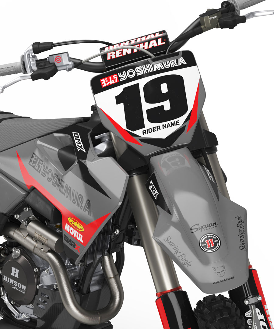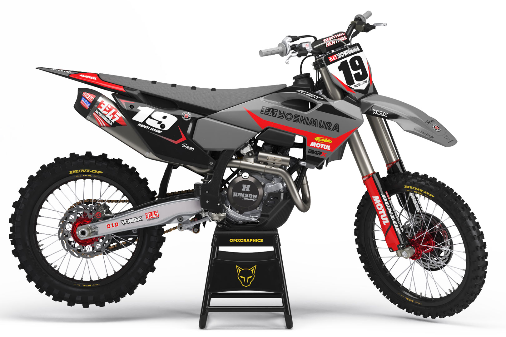 All of our custom graphic kits can be made to fit any make and model! If you don’t find your bike / model on our website, feel free to drop a line and we will figure it out for you! Full graphics kit includes: Radiator shroud set Front and side number plate decals Air box decals Front fender decal Rear fender decal Fork guard decals Swing arm decals Logos: We have most of Motocross industry related logos that can be used on your decals; However there are few logos like energy drink that we cannot use; If you would like to use your own sponsor / company logos you can upload them or send to sales@omxgraphics.com including your order number and name; All logos need to be in vector format (ai. eps. pdf.). If you do not have one of these we will our best to work with your file or make a custom one for you; Our materials All our decals are made using Substance materials only - industry leading print media for motocross and other power-sport applications. Developed alongside worlds best racers and testet in harsh conditions.  FLO Technology eliminates bubbles and massively reduces installation time.  6mil Ultra-Aggressive Print Media with FLO Technology + 15mil Premium Clear Overlaminate All materials are specifically engineered for motocross, karts, ATVs, snowmobiles, side-x-sides, helmets, and other extreme applications requiring exceptional protection, durability, and flexibility.  Turnaround - Most orders are shipped out within 5 - 10 business days after your order date; - Seat covers are shipped separately; - Please allow us 1 - 5 business days for production after your design approval; Here you can find a video on how to easy install your new graphics kit.