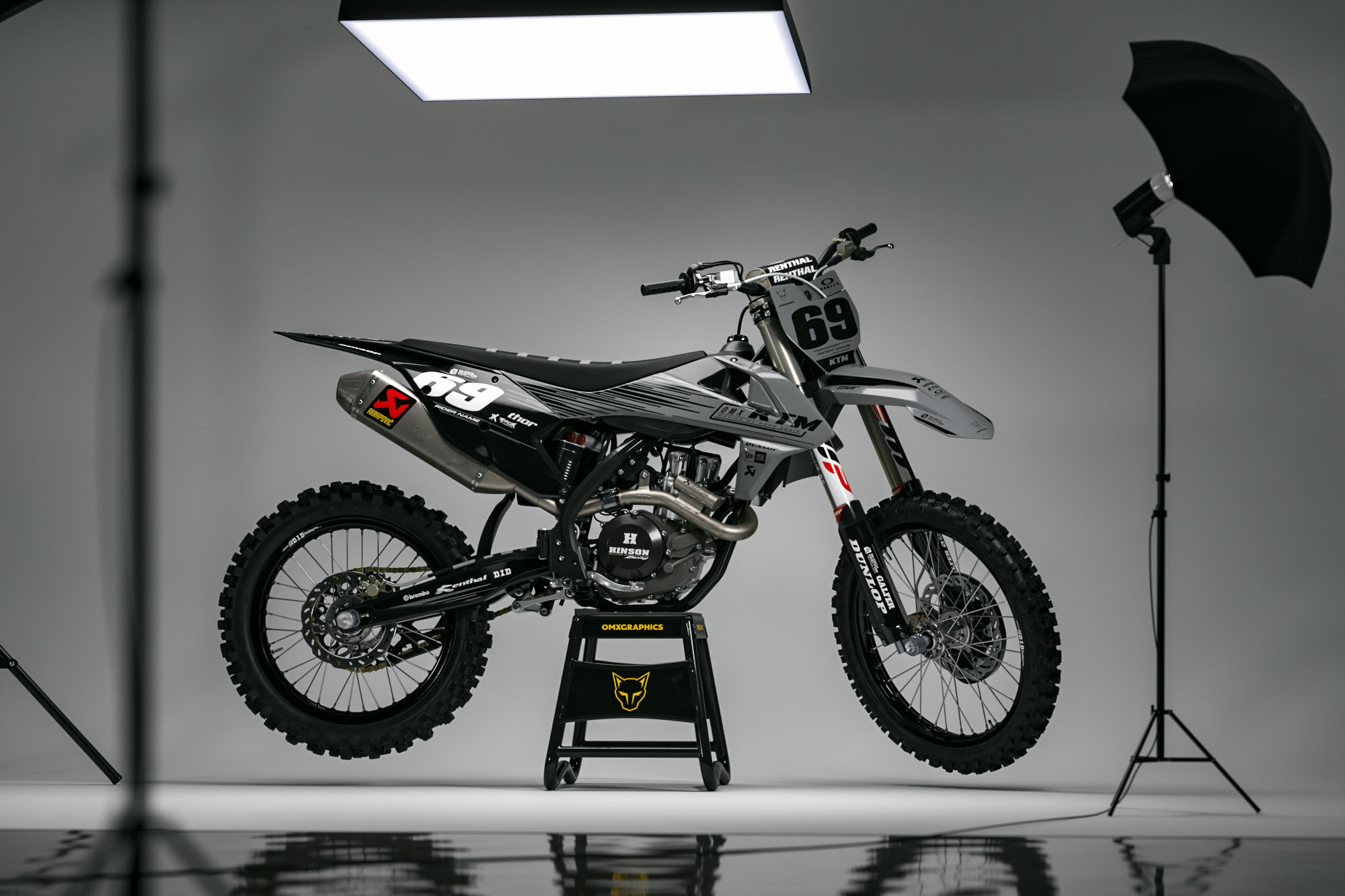 Chez OMX Graphics, on est des riders tout comme toi, et on sait exactement à quel point c’est important d’avoir une moto qui a autant de style qu’elle envoie sur la piste. C’est pour ça qu’on a créé une large gamme de kits déco KTM pré-designés. Que tu cherches un look tout frais ou quelque chose qui reflète vraiment ta personnalité, on a ce qu’il te faut. Tous les kits peuvent être personnalisés avec ton nom, ton numéro, tes logos et tes couleurs – exactement comme tu le veux.