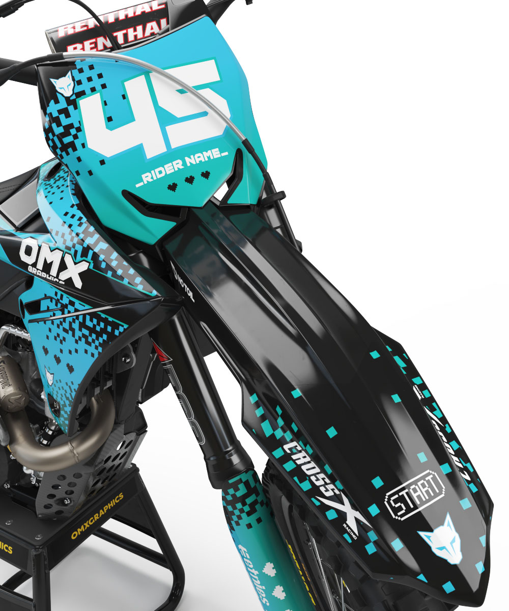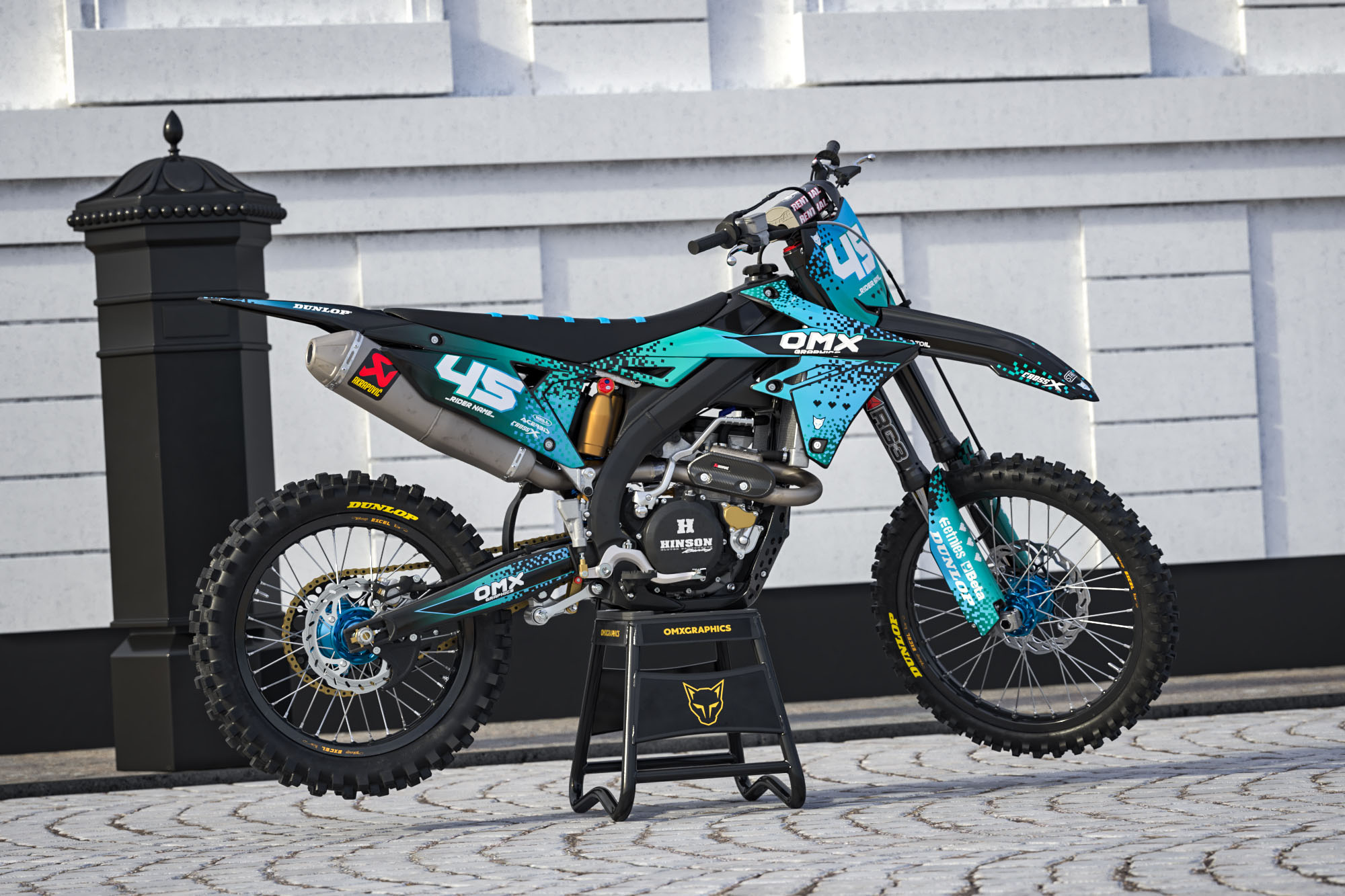 All of our custom graphic kits can be made to fit any make and model! If you don’t find your bike / model on our website, feel free to drop a line and we will figure it out for you! Full graphics kit includes: Radiator shroud set Front and side number plate decals Air box decals Front fender decal Rear fender decal Fork guard decals Swing arm decals Logos: We have most of Motocross industry related logos that can be used on your decals; However there are few logos like energy drink that we cannot use; If you would like to use your own sponsor / company logos you can upload them or send to sales@omxgraphics.com including your order number and name; All logos need to be in vector format (ai. eps. pdf.). If you do not have one of these we will our best to work with your file or make a custom one for you; Our materials All our decals are made using Substance materials only - industry leading print media for motocross and other power-sport applications. Developed alongside worlds best racers and testet in harsh conditions.  FLO Technology eliminates bubbles and massively reduces installation time.  6mil Ultra-Aggressive Print Media with FLO Technology + 15mil Premium Clear Overlaminate All materials are specifically engineered for motocross, karts, ATVs, snowmobiles, side-x-sides, helmets, and other extreme applications requiring exceptional protection, durability, and flexibility.  Turnaround - Most orders are shipped out within 5 - 10 business days after your order date; - Seat covers are shipped separately; - Please allow us 1 - 5 business days for production after your design approval; Here you can find a video on how to easy install your new graphics kit.