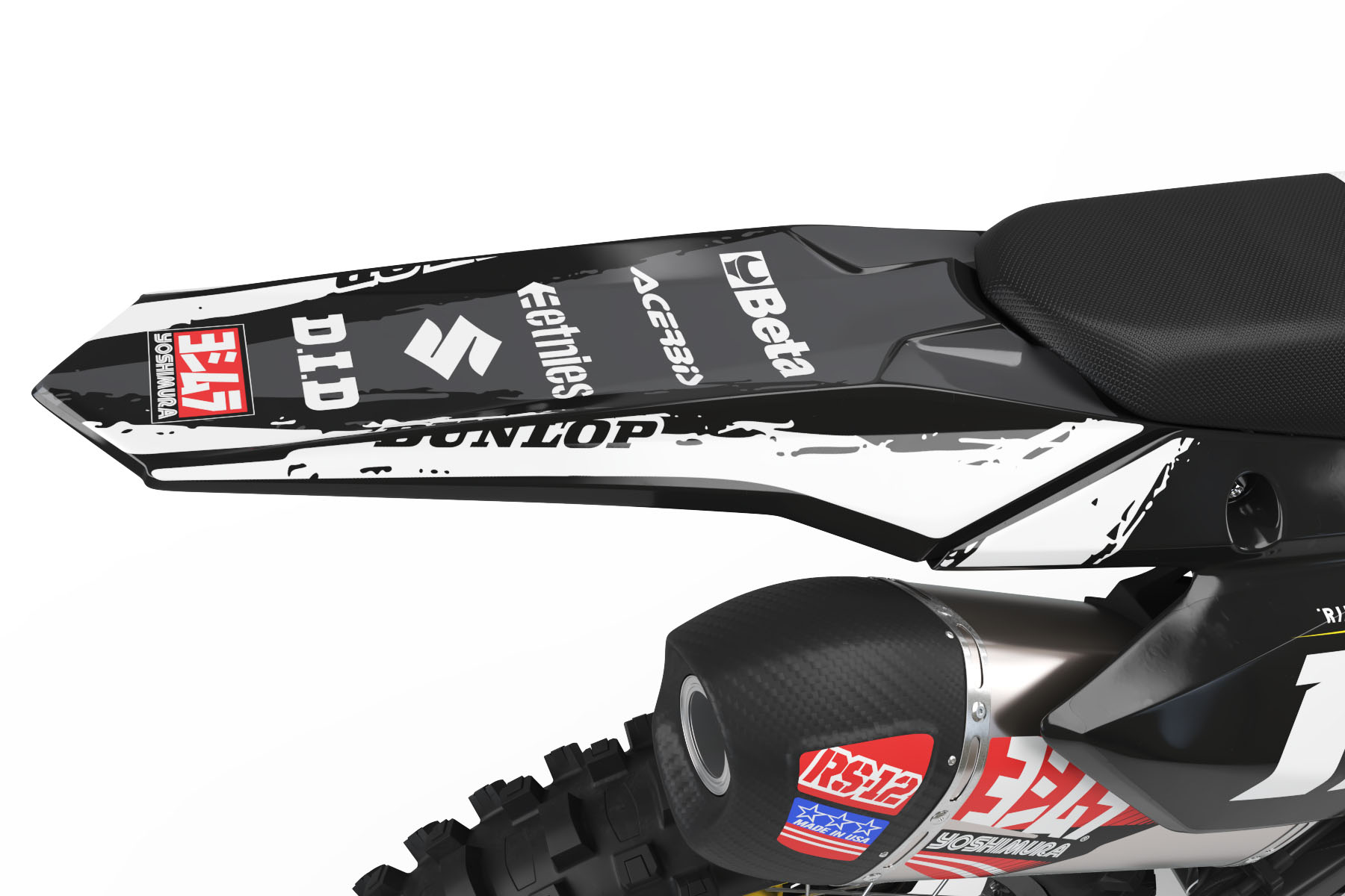 Ce design personnalisé est disponible pour la plupart des modèles Suzuki à partir de 1998. Choisis ton modèle dans la liste ou renseigne-le manuellement. Tu peux changer les couleurs, ajouter des logos, ton nom et ton numéro – sans aucun frais supplémentaire! Il te suffit d’indiquer tes détails de personnalisation ci-dessous, et nous t’enverrons un aperçu du design par e-mail pour validation.