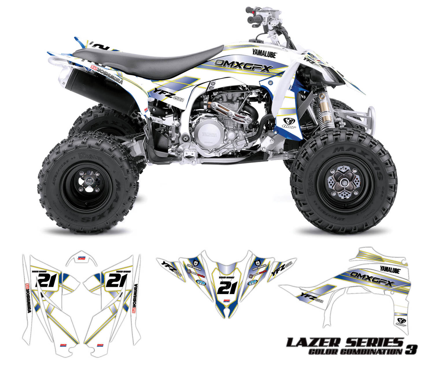 OMXGraphics produit des kits déco pour les modèles Yamaha suivants: YFZ 450R, YFZ 450, YFZ 450 Maier, YFZ 450X, Raptor 700, Raptor 660, Raptor 350, Raptor 250, Raptor 125, Raptor 90, Raptor 50, Banshee 350, Warrior 350, Wolverine 450, Wolverine 350, Kodiak 450, Grizzly 700, Grizzly 550.
