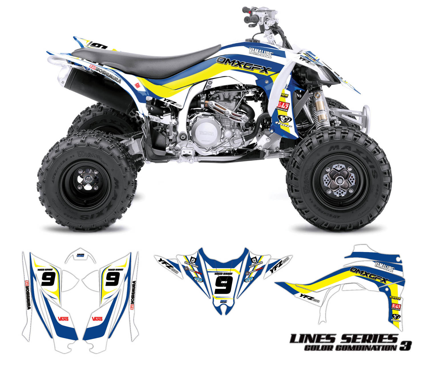 OMXGraphics produit des kits déco pour les modèles Yamaha suivants: YFZ 450R, YFZ 450, YFZ 450 Maier, YFZ 450X, Raptor 700, Raptor 660, Raptor 350, Raptor 250, Raptor 125, Raptor 90, Raptor 50, Banshee 350, Warrior 350, Wolverine 450, Wolverine 350, Kodiak 450, Grizzly 700, Grizzly 550.
